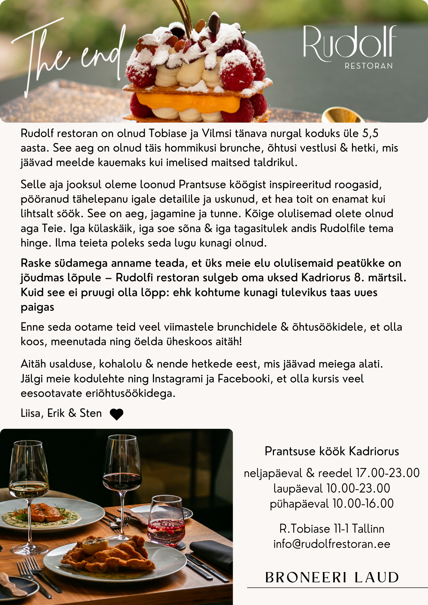 VIIMANE eriõhtusöök 8. märtsil